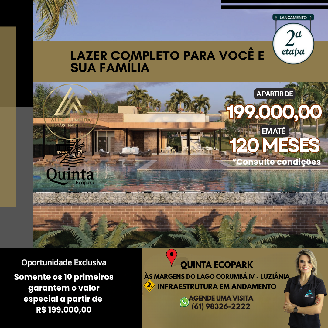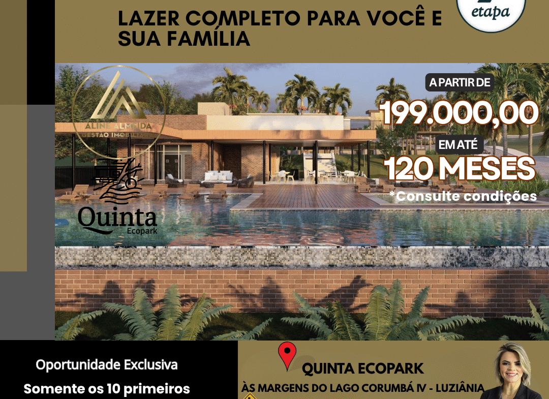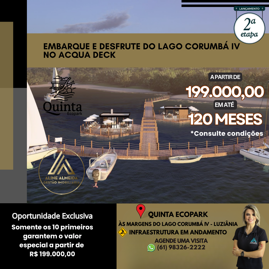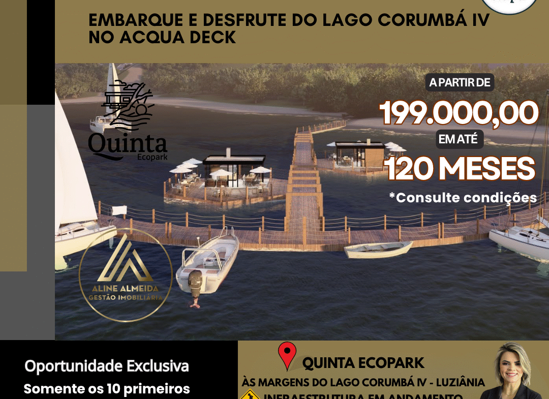 – Ao adquirir um lote no Quinta EcoPark, você ainda ganha um Passaporte Black vitalício para o Bali Park, o maior parque aquático do centro-oeste, com a possibilidade única de ir de lancha ou catamarã pelo lago até o complexo.